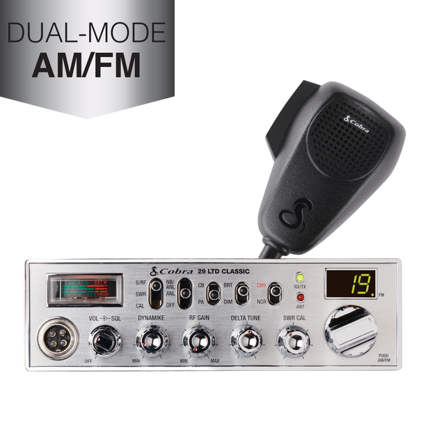 Cobra 29 LTD CB radios are known for their performance, reliability, and durability and will provide you with years of reliable service. Now, thanks to Cobra's leadership to enable FM mode usage with CBs used in the United States, you can enjoy dual-mode AM/FM functionality in your CB.