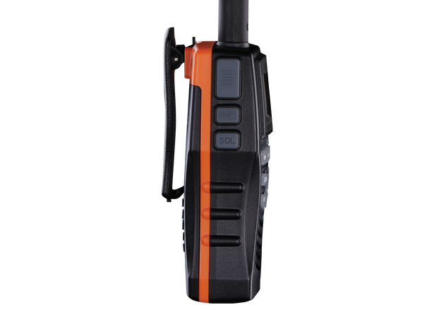 Floating - Floating design and orange core make retrieving radio easy if dropped overboard.