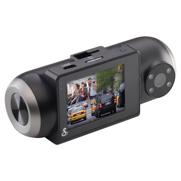 A 2" screen display shows exactly what the dual cameras are recording so you know you've got the right angles covered during your drive