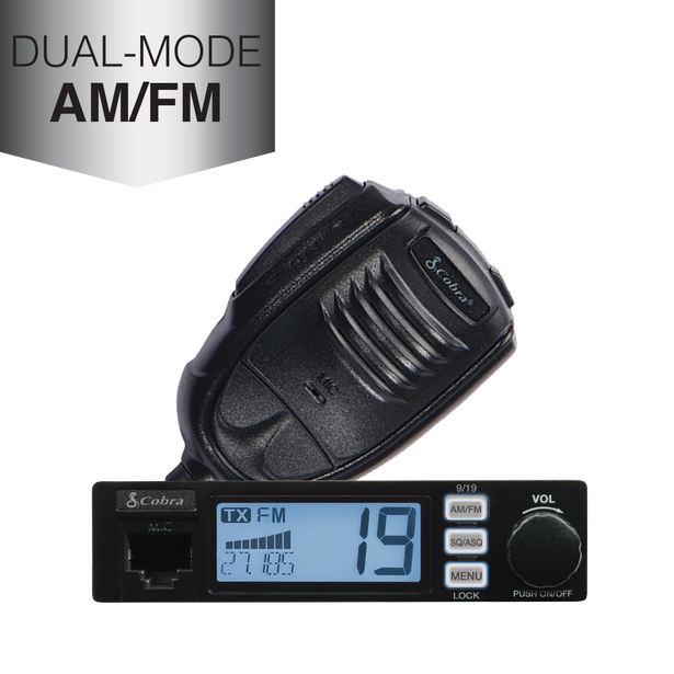 The Cobra 19 MINI is our smallest CB radio with all the communication and convenience features you need. Plus, thanks to Cobra's leadership to enable FM mode usage with CBs used in the United States, you can now choose between dual-mode AM/FM or AM-only versions.