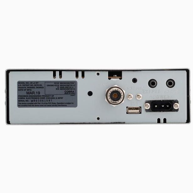 With your Cobra 29 LX BT CB Radio you’ll receive a handheld microphone, transceiver bracket, microphone bracket, external microphone, and DC power chord.