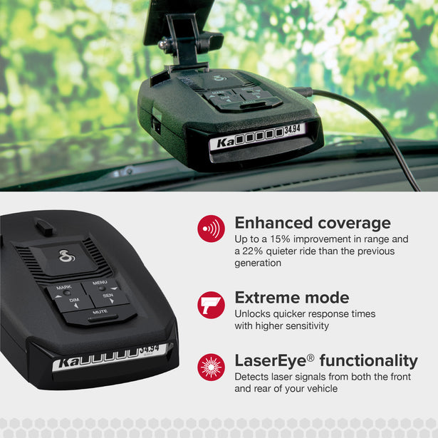 What types of radar and laser signals does it detect? The RAD 490i detects X, K, and Ka radar bands, as well as laser signals from both the front and rear using LaserEye® technology.